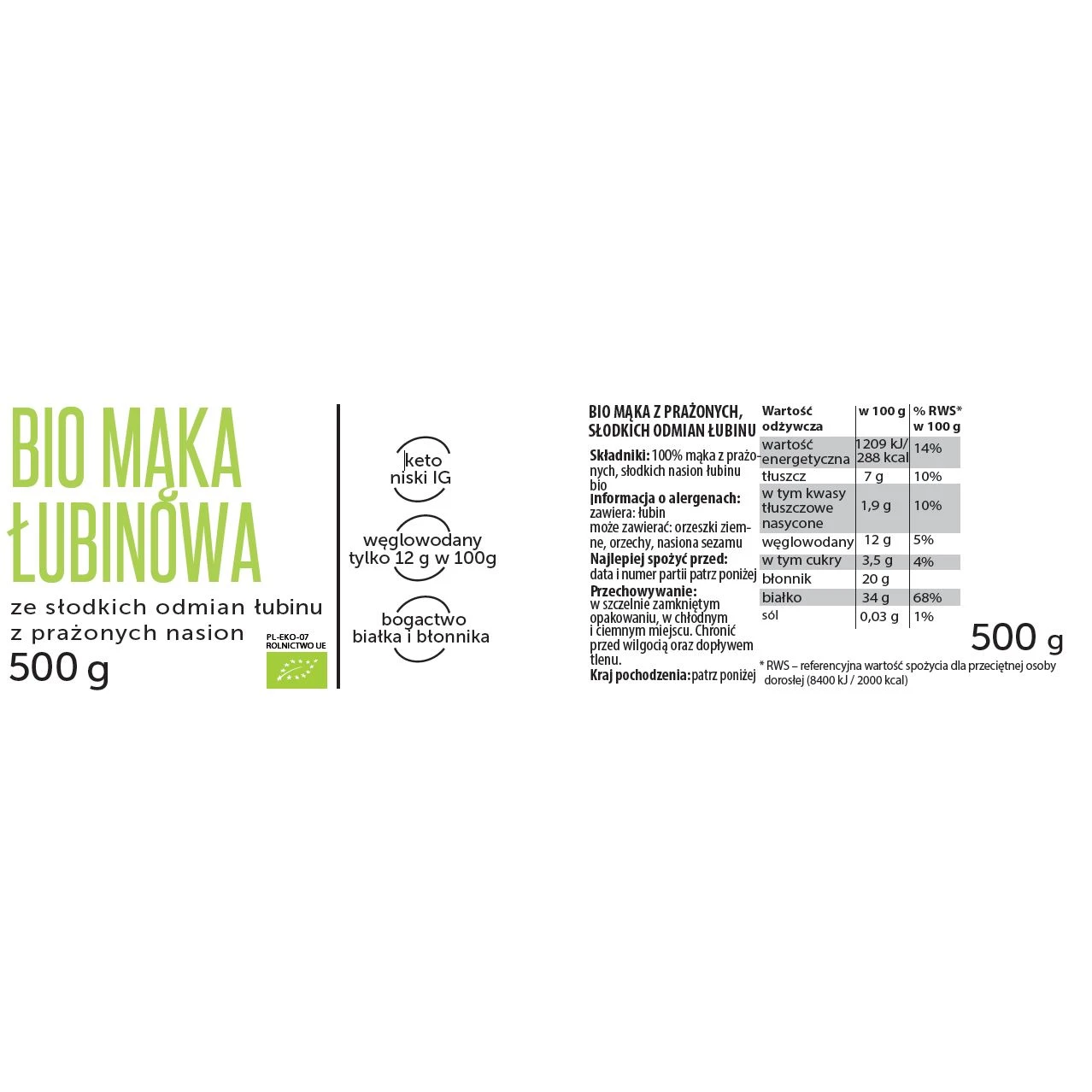Składniki: 100 % mąka z prażonych, słodkich nasion łubinu bio