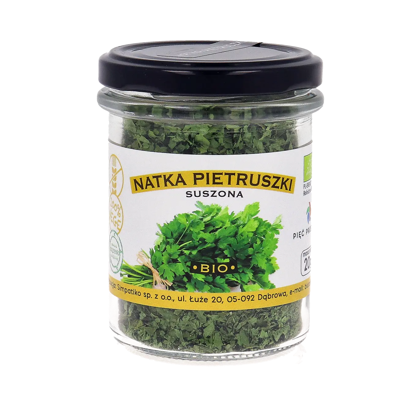 Składniki: ekologiczna suszona natka pietruszki 100 %.