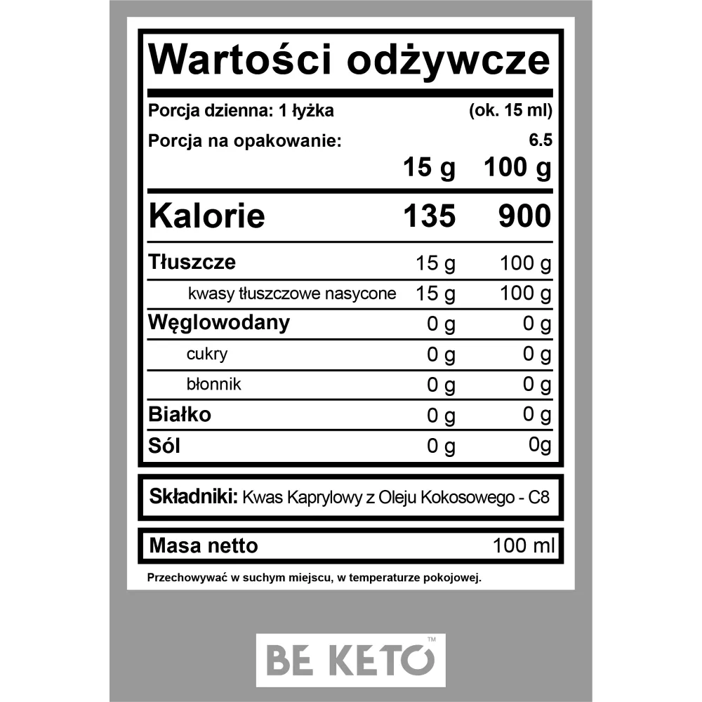 Składniki: kwas kaprylowy z oleju kokosowego - C8.