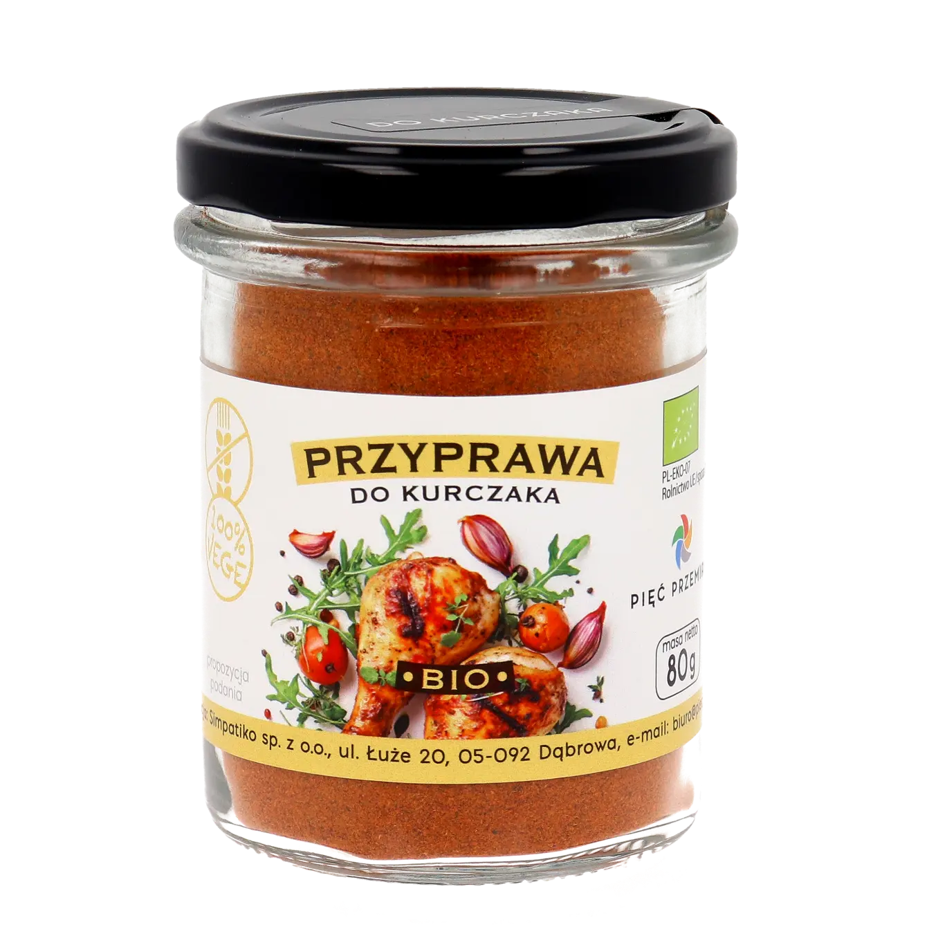 BIO Przyprawa do kurczaka to unikalna kompozycja naturalnych ziół, opracowana według tradycyjnych receptur. Jej intensywny aromat i głęboki smak podkreślają walory każdej potrawy, wydobywając naturalny smak mięsa.