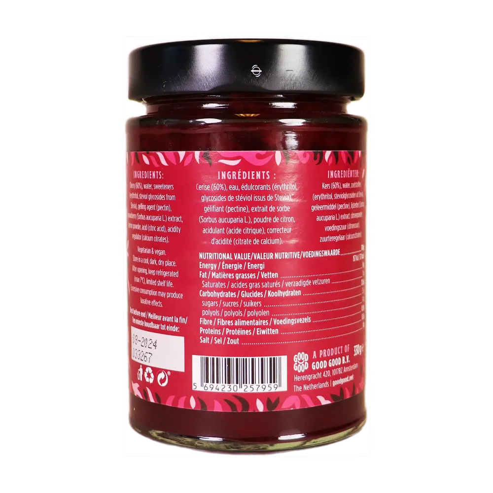 Dżem wiśniowy bez dodatku cukru - Cherry Jam - Keto Friendly - Good Good, 330g
