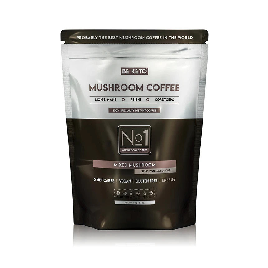 Kawa rozpuszczalna - Mushroom (Lion’s Mane & Cordyceps & Reishi) - francuska wanilia - BeKeto, 250g