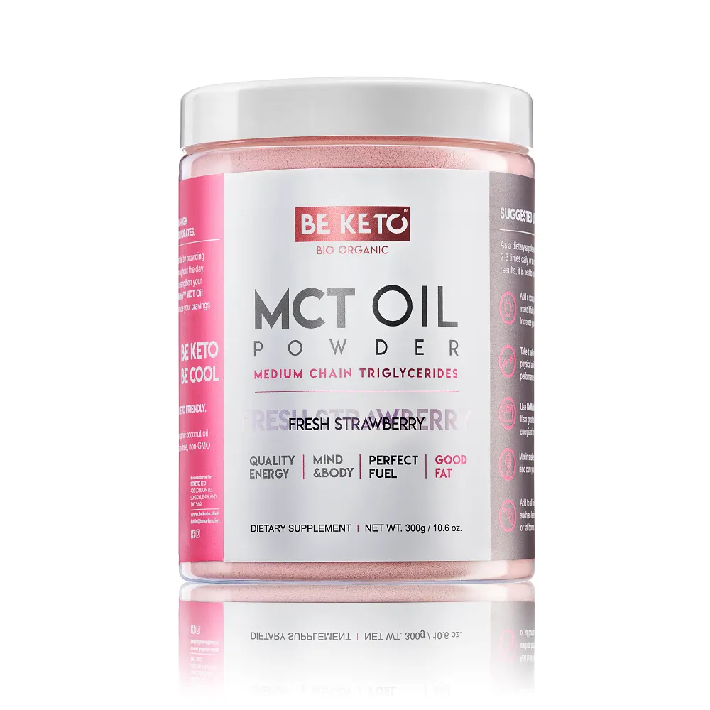 Jedna porcja BeKeto MCT Oil Powder dostarcza 7,5 g średniołańcuchowych trójglicerydów (MCT). W porównaniu z innymi źródłami kwasów tłuszczowych, ich krótsza długość łańcucha zapewnia organizmowi natychmiastowy dopływ energii bezpośrednio do mózgu i ciała, zapobiegając jej przechowywaniu jako niechciany tłuszcz. Ponadto MCT pomagają organizmowi wytwarzać więcej ketonów, niezbędnych do osiągnięcia stanu ketozy polegającego na spalaniu tłuszczu – idealne dla osób stosujących dietę ketogeniczną lub inną dietę niskowęglowodanową. Codzienna suplementacja zapewnia większą jasność umysłu, wzrost energii oraz zmniejszenie zmęczenia. Idealny dla osób, które chcą schudnąć, olej MCT ma udowodnione działanie tłumiące głód i wpływa na uczucie sytości.
